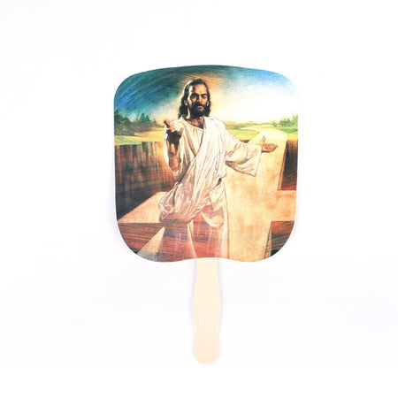 Our beautifully designed traditional hand fans are the perfect accessory to keep you cool during any event. Made from durable cardstock, these fans are built to last and feature a full-color printed design on the front. The imagery of Jesus adds a meaningful touch, making them perfect for regular church services, events, and gatherings.