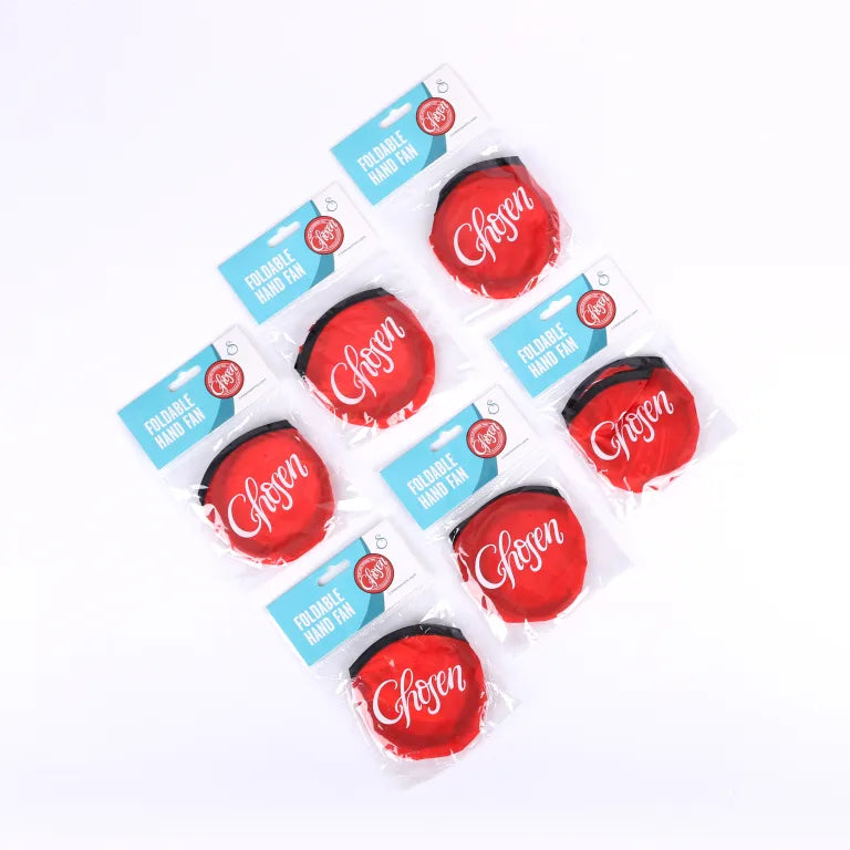 Our Foldable Fans are the perfect blend of functionality and faith, offering a stylish yet practical solution to staying cool on warm days. Designed with a meaningful message, the fan features the word “Chosen” in bold white lettering on a vibrant red and black backdrop. This design is not only visually striking but serves as a reminder of your spiritual journey.