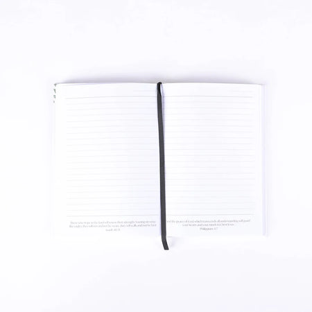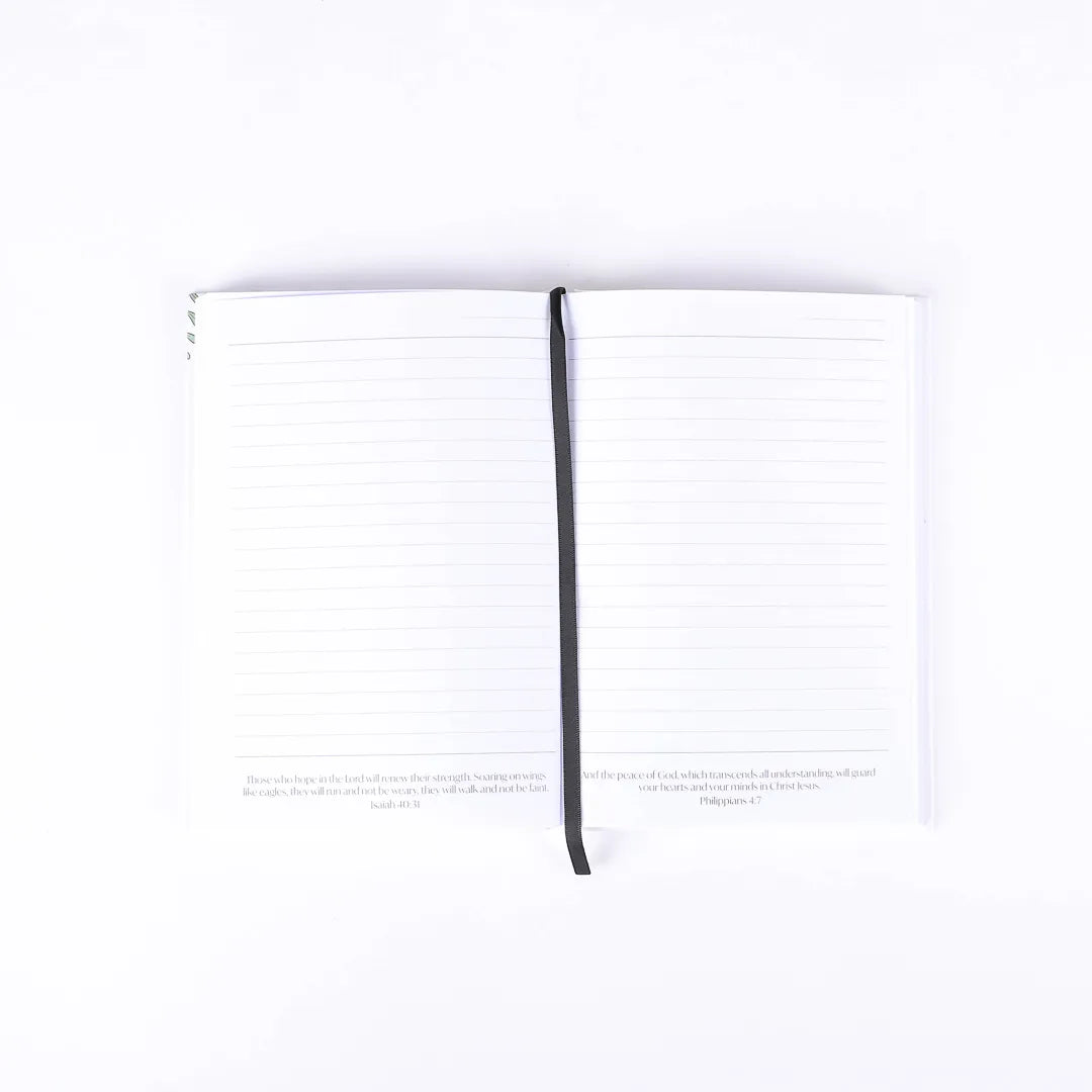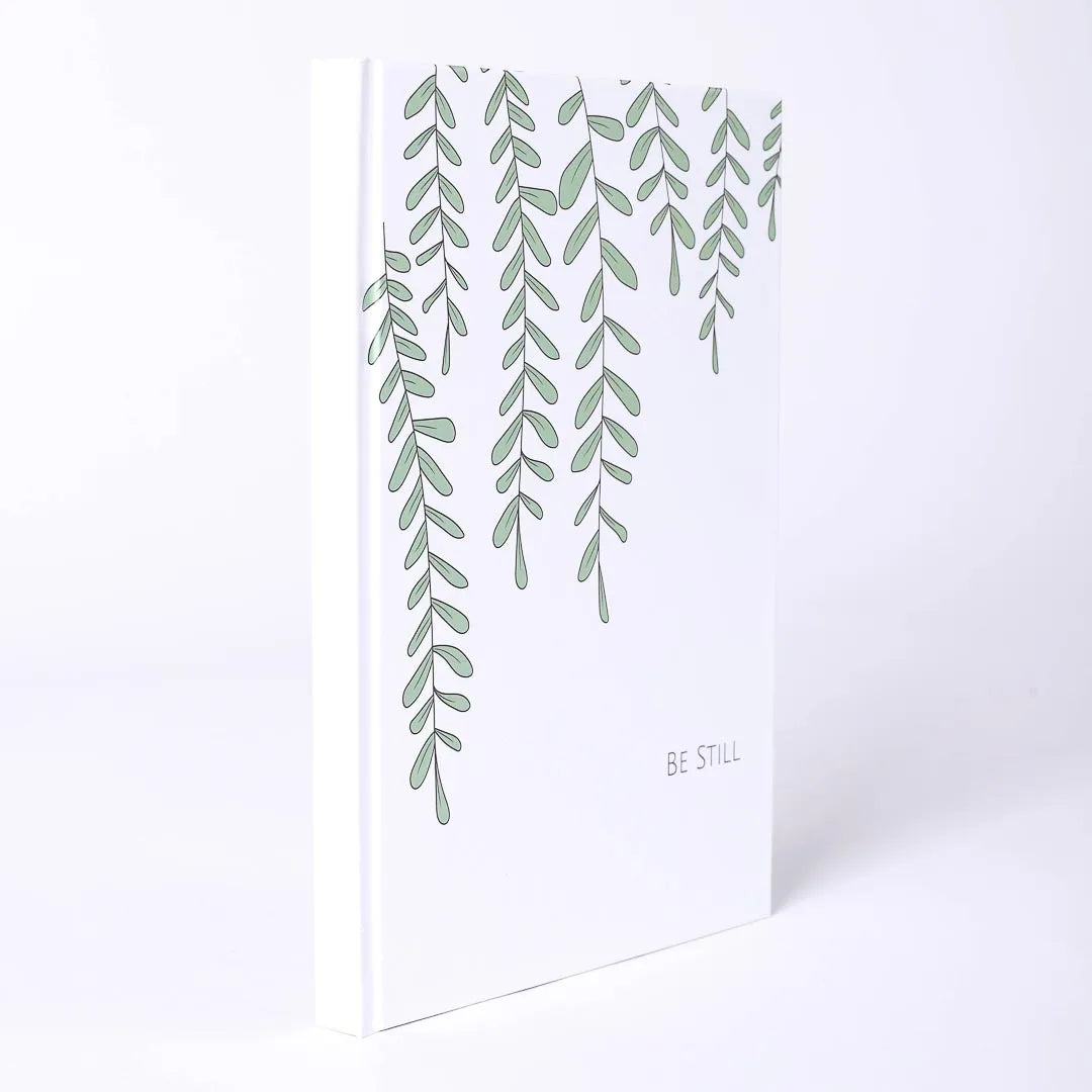 Find daily peace, joy and inspiration with this elegant hardbound journal. Featuring a simple vine design on the cover, the crisp white background is the perfect canvas for the shades of green in the artwork, along with the message “Be Still” as a simple yet beautiful reminder to pause, be still and reset.