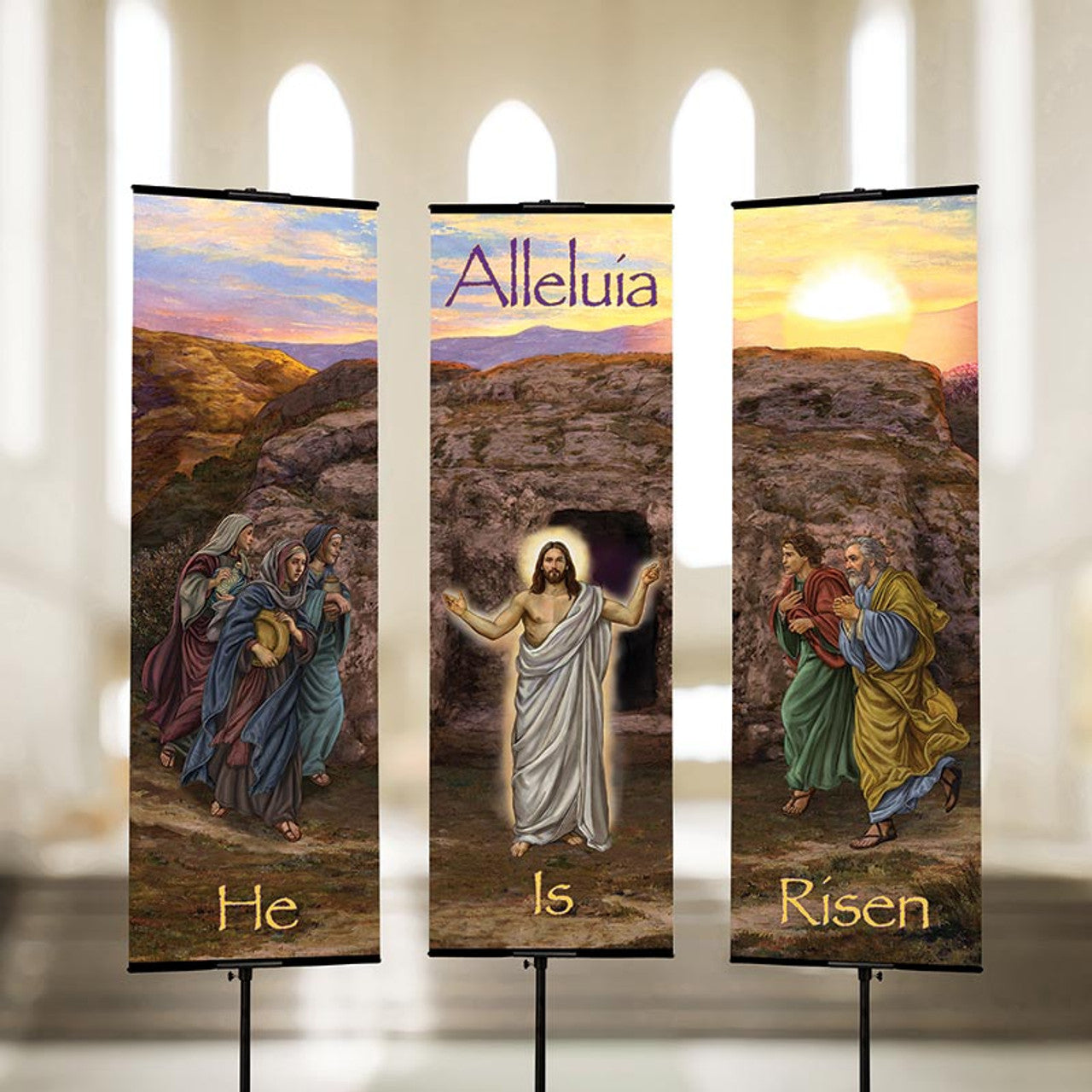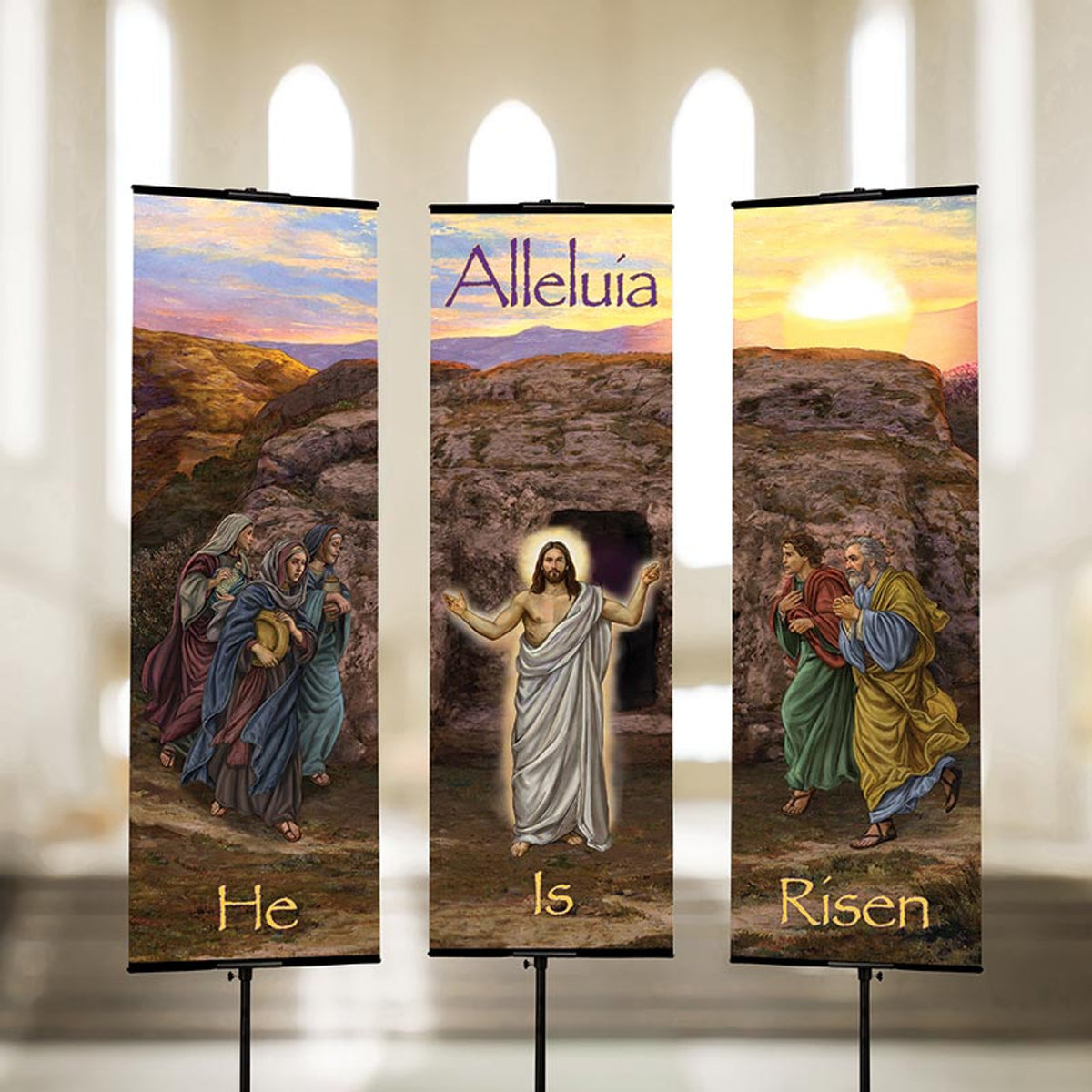 This banner features exclusive artwork by artist Michael Adams, printed on a wrinkle-resistant, luxurious satin fabric with beautiful depiction that would be a wonderful addition to your Advent, Christmas, Lent or Easter services.