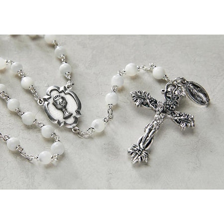 Heritage Collection First Communion Rosary – White | 6 mm Glass Pearl | 21″ Chain