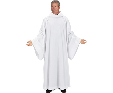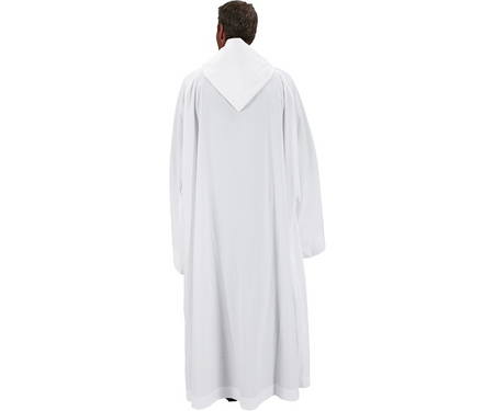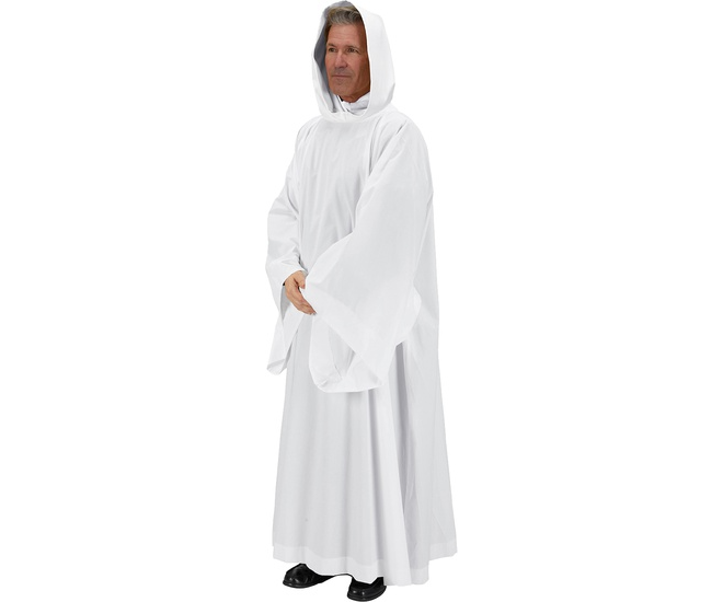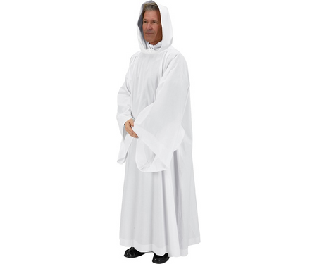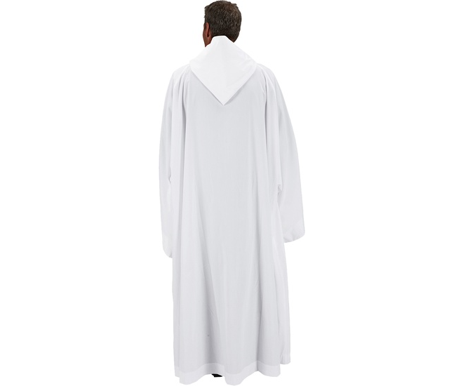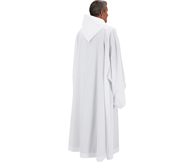 Hooded Monastic Alb is constructed in an easy-care poly-cotton material. Featured large monastic style sleeves and hood. Wear with overlay stoles or non-cowl neck chasubles.