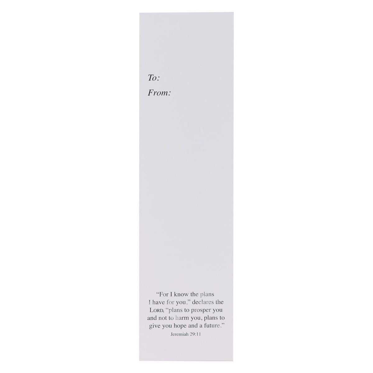 The sturdy bookmarks with a fun design are gloss laminated, and they are great to hand out to a classroom full of kids. Each bookmark can be personalized on the back with a note, and the Scripture verse is repeated ins mall black letters.