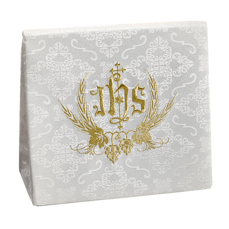 This IHS Chalice Burse is a reverent accessory for your Eucharistic vestments, featuring the sacred IHS symbol in gold embroidery. Designed to hold and protect sacred linens, it complements other items in the Veneto Collection for a complete and unified altar presentation.