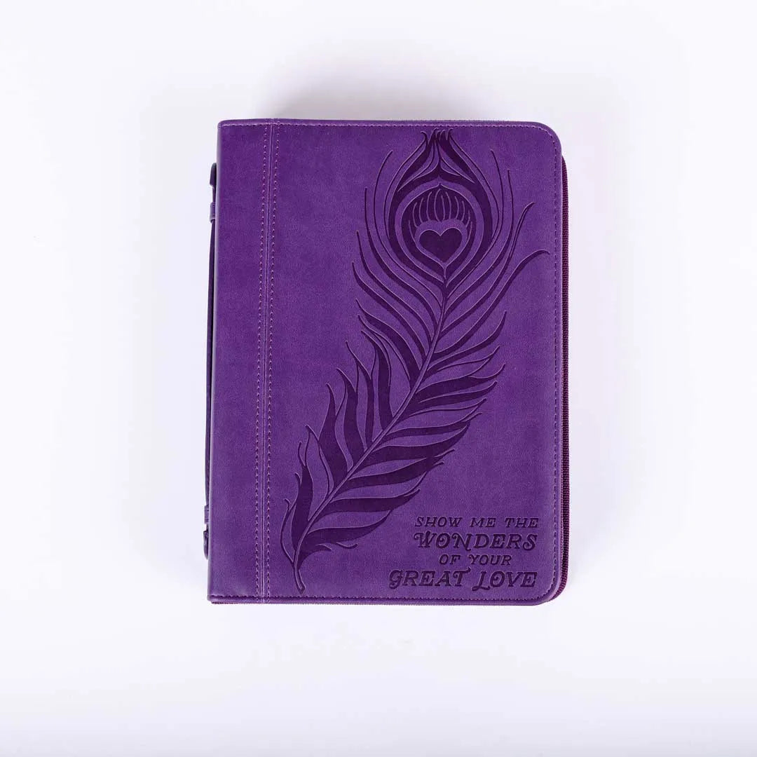 The cover is a beautiful purple, decorated with an embossed feather design and “Show me the Wonders of Your Great Love”. Not only beautifully made but also inspiring to whoever sees and uses it.