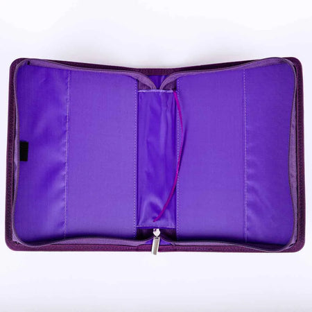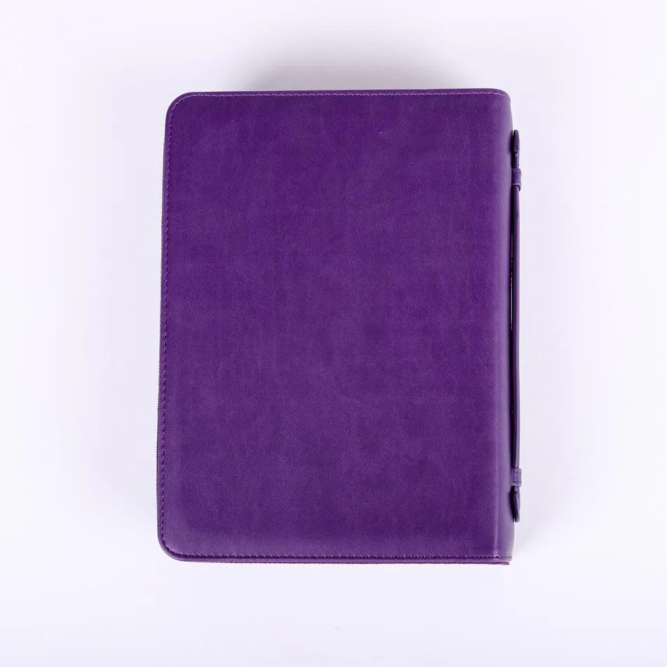 This beautiful imitation leather bible cover is a must-have for anyone who wants to keep their bible protected and stylish at the same time. The cover is made from high-quality imitation leather that looks and feels like the real thing, but is more durable and easy to clean. The cover features a convenient carry handle, making it easy to take with you wherever you go. The pen loop on the inside allows you to keep a pen or pencil close at hand, so you can take notes or mark passages as you read. The ribbon bookmark ensures that you can easily pick up where you left off, and the sturdy zipper with engraved pull tab keeps the cover securely closed when not in use.
