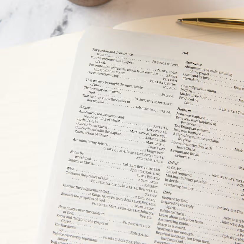 - Topical concordance to help kids find important topics in the Bible