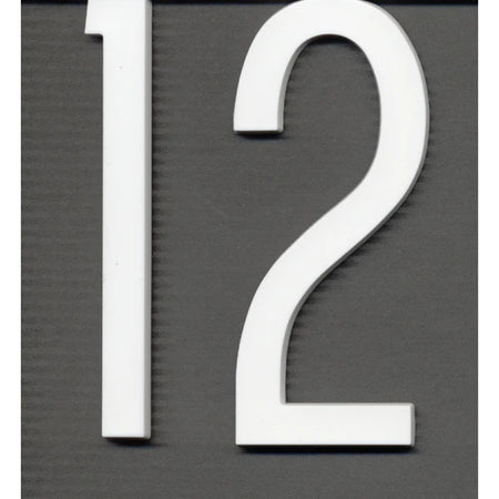 Custom cut white plexiglass with flexible magnetic backing. 1/8" thick x 4" high. One set of 0-9.