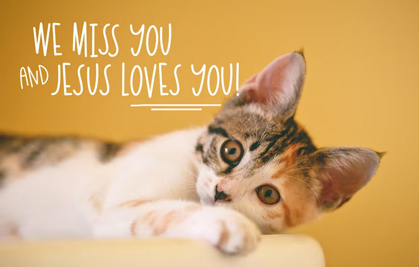 Miss You Postcard: We Miss You and Jesus Loves You (Package of 25): John 15:9 (KJV)