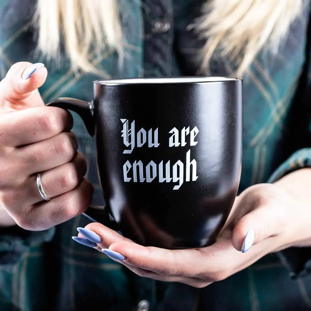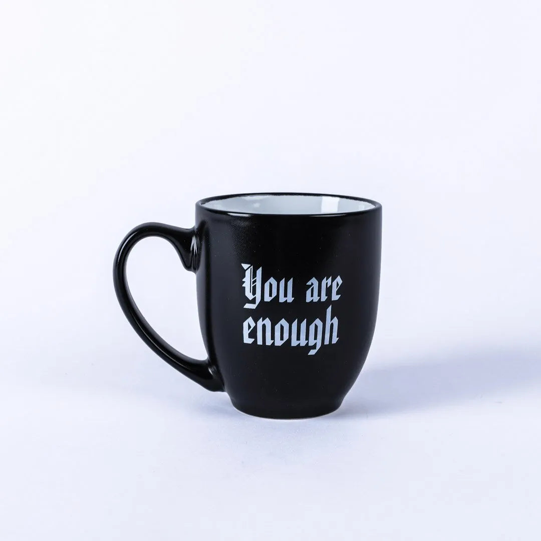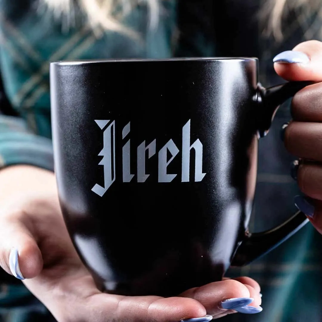 Jireh (derived from Hebrew) means provider or one who sees ahead. It serves as a powerful reminder that in every moment, you are supported and provided for. With its black exterior and white interior, this mug presents a striking contrast that embodies both elegance and simplicity. On one side, you’ll find a beautifully designed message of “Jireh” in brilliant white, representing strength and divine provision. On the other side of the mug, the phrase “You Are Enough” reminds us that God will always provide, and He is always enough for us. Both designs are in brilliant white, matching the shining interior of the mug.