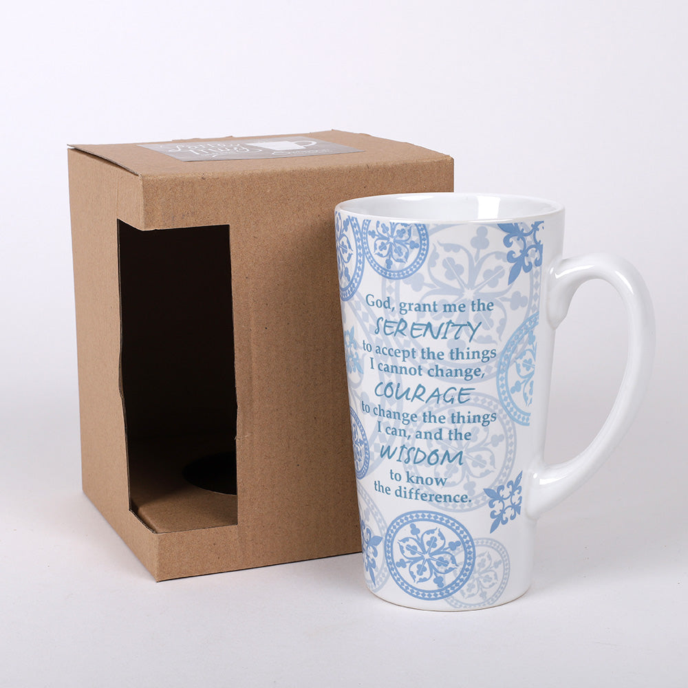 Enjoy every sip in style and let the Serenity Latte Mug inspire peace, courage, and wisdom in your daily life.