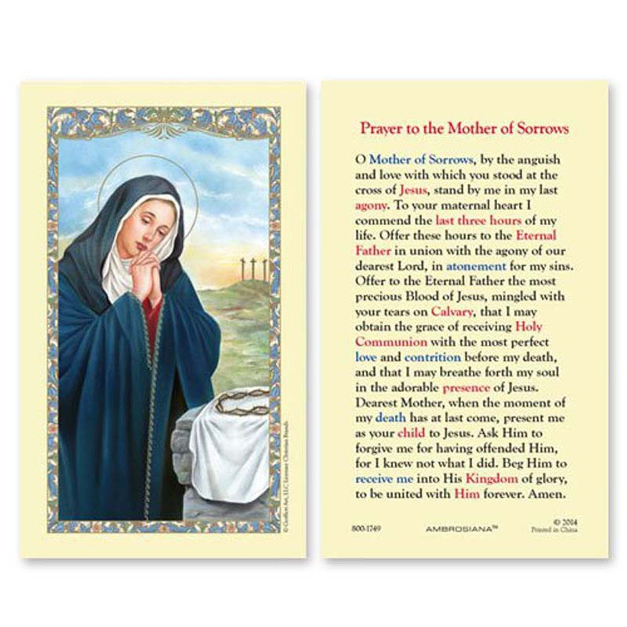 Our Lady of Sorrows Laminated Holy Card | Prayer to the Mother of Sorrows – Pack of 25