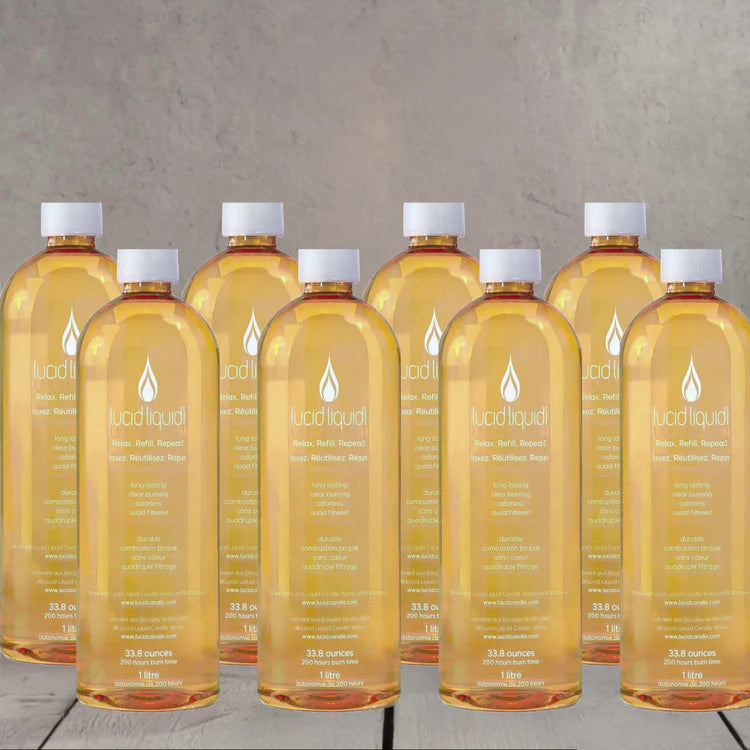 Whether you're a home-owner, event planner or church administrator, this high-purity paraffin refill for Lucid candles delivers consistent, clean flame with no dripping wax and minimal fuss. Choose from single-bottle or case pack options below to keep your candles glowing.