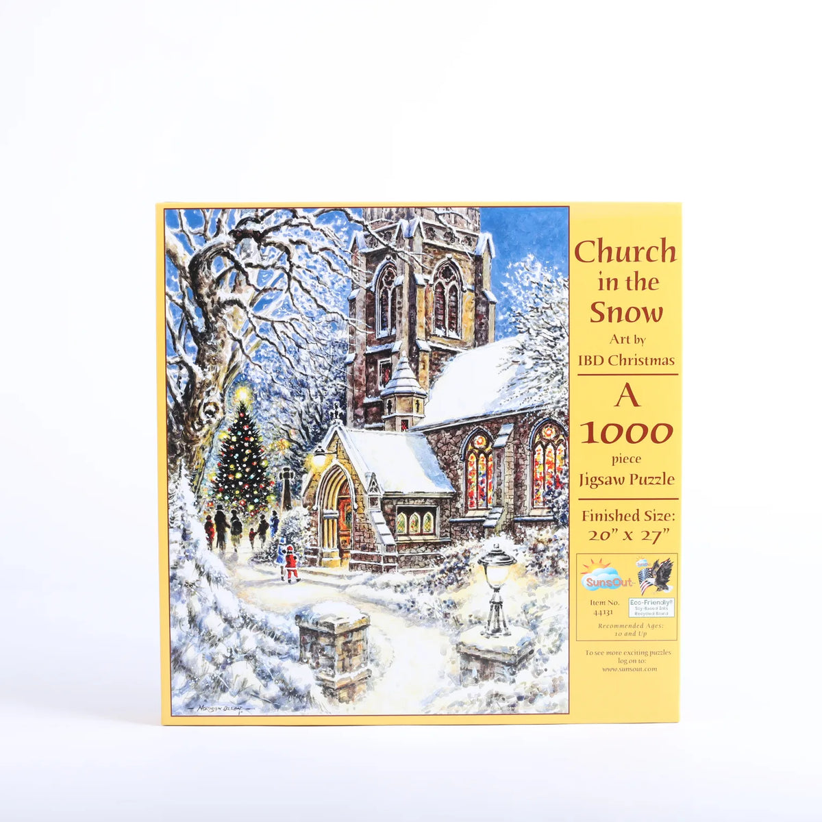This 1000-piece jigsaw puzzle beautifully captures the spirit of the season with a Christmas/winter church scene designed by IBD Christmas. Featuring a serene snow-covered church surrounded by twinkling lights and a peaceful winter landscape, this puzzle transports you to a cozy holiday setting that embodies the warmth and joy of the Christmas season.