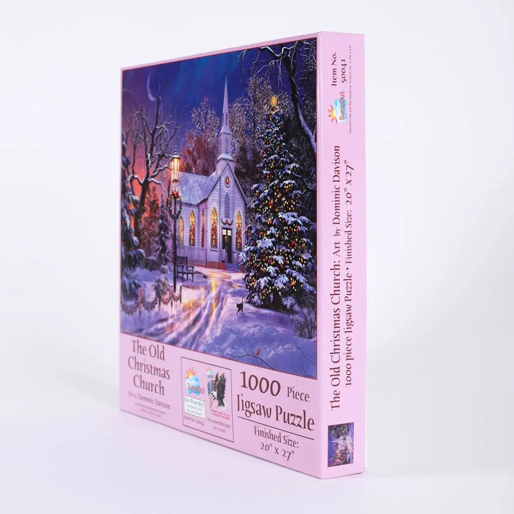 This 1000-piece jigsaw puzzle is a beautifully crafted work of art, featuring a Christmassy Church scene, designed by the talented Dominic Davison. The serene winter atmosphere and festive charm make this puzzle a perfect way to get into the holiday spirit while enjoying a relaxing and rewarding activity.