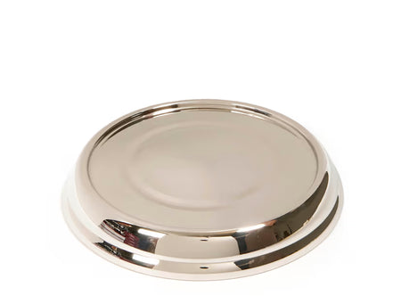 The RemembranceWare®: Communion Bread Plate Base is made of the same high-end, food-grade stainless steel as all RemembranceWare pieces. They are available in both brass and silver finishes and achieve their beautiful shine through a special polishing process. Designed to provide a sturdy base for stacking Communion plates, the base has smooth, double-rounded edges and measures 1⅛” tall with a diameter of 8¼”. They are easily cleaned with mild soap, water, and a soft cloth. The RemembranceWare: Communion Bread Plate Base arrives beautifully boxed and carries a 5-Year Pledge.