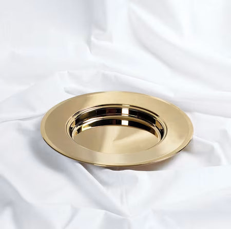 The RemembranceWare Communion Bread Plate in brass finish combines form and function. Made from food-grade stainless steel, the brass tone shines through a refined multi-step finishing process. Perfect for smaller communion setups, this plate is both beautiful and practical.
