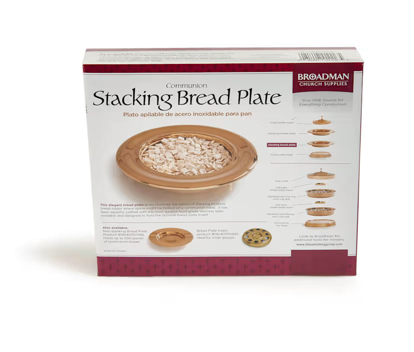 RemembranceWare: Communion Stacking Bread Plate - Brass Finish: Stainless Steel / Holds Up to 750 Pieces of Communion Bread / Works with Bread Plate Insert / Stackable