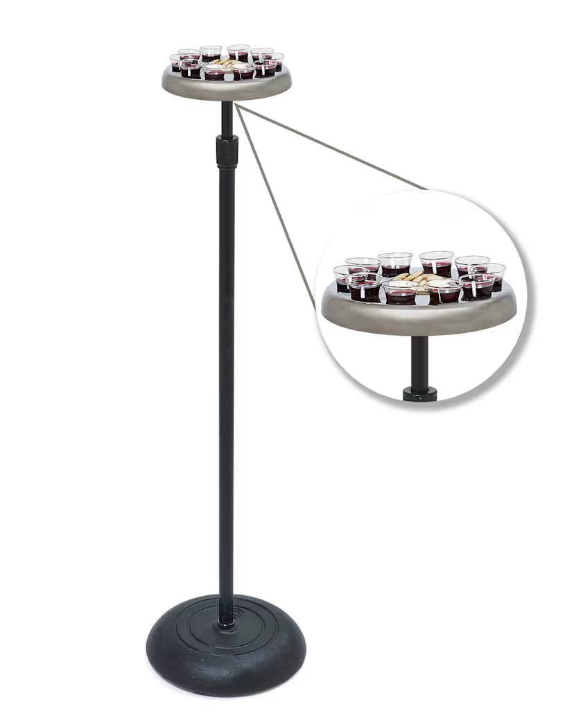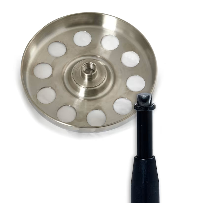 The RemembranceWare: Mic Stand Communion Tray - Silver Finish simplifies serving communion to Worship Teams, Choirs, and those on stage during this important part of your worship service. Each Mic Stand Communion Tray holds 10 cups and has a recessed center for holding bread or wafers. A threaded fitting is solidly welded to the bottom of this serving tray allowing it to securely attach to any standard mic stand. Each piece is made of high polished stainless steel for lasting beauty and durability. (Mic stand not included)