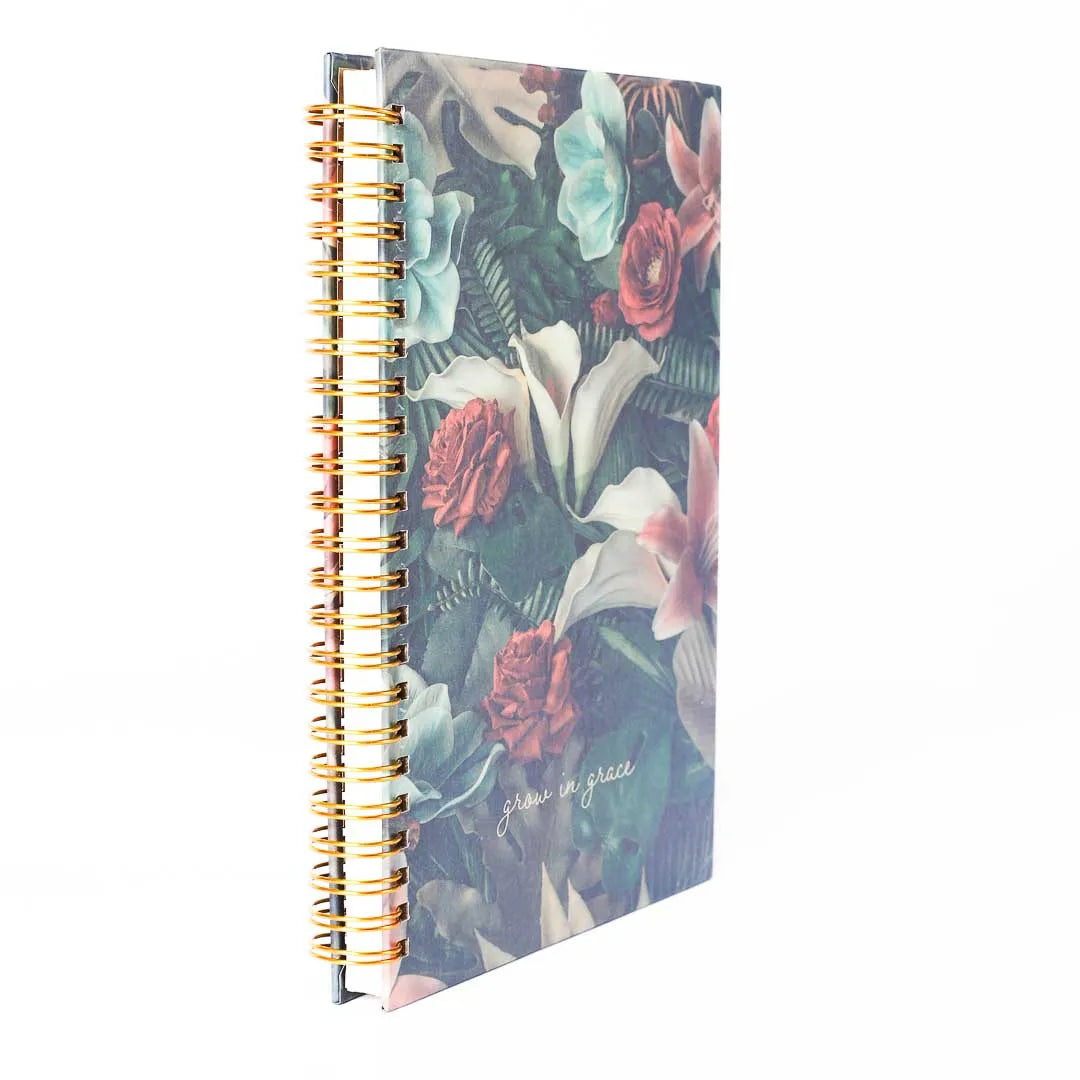 Grow in grace with this lovely floral spiralbound journal. The intriguing colors and floral design features the hopeful words “Grow in Grace” in sweeping scrip. It creates a welcoming space to record your thoughts, prayers, and notes in your daily life.