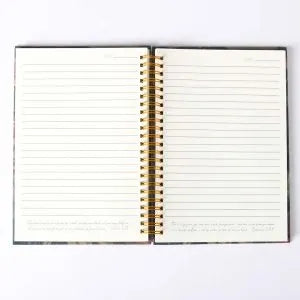 Crisp lined pages with inspiring scripture verses at the bottom provide plenty of space to chronicle your thoughts, while the shining gold metal spiral and thick covers allow this journal to withstand daily wear and tear, and ensure that it lays flat while in use.