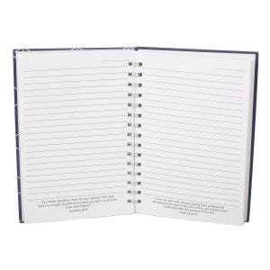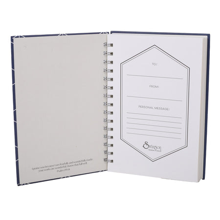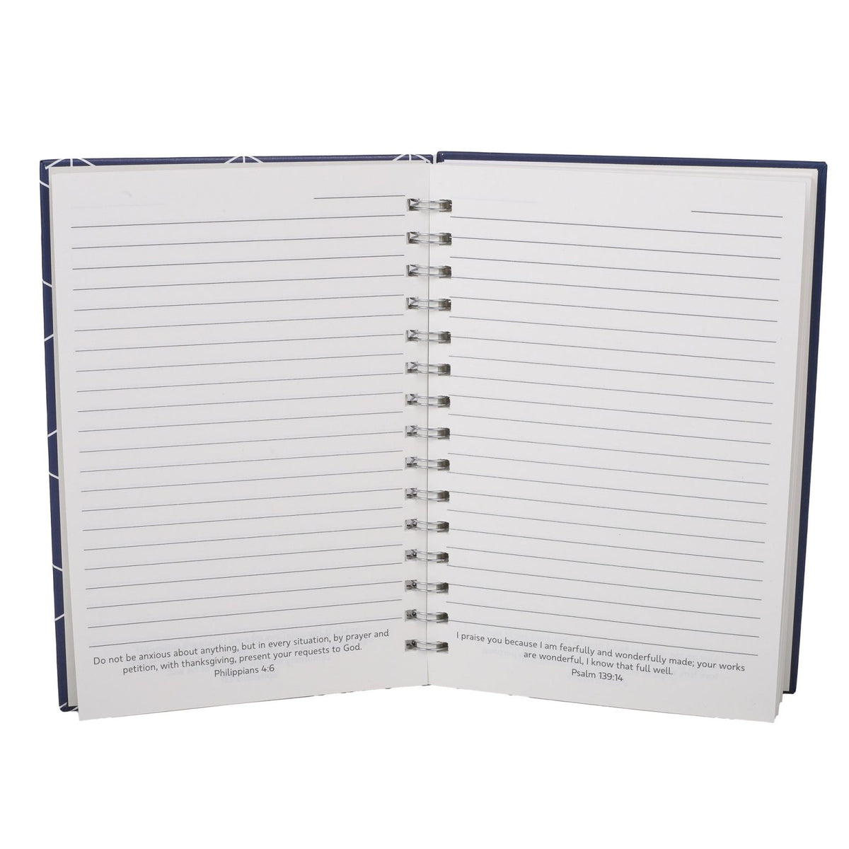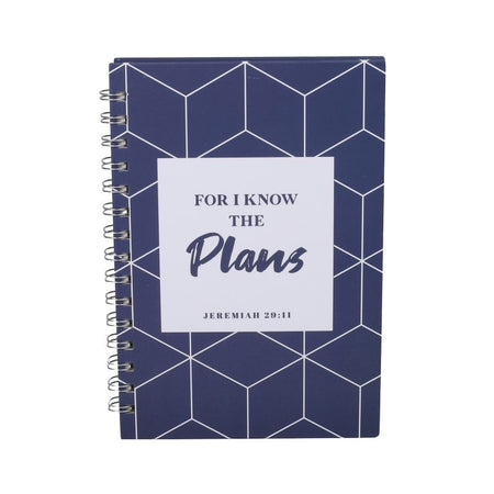 · Deep blue spiral journal with Jeremiah 29:11 Scripture design and features the Spiral Bound Journal – Jer. 29:11 – 196 Pages branding