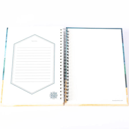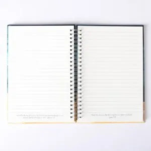 Crisply lined pages with inspiring scripture verses at the bottom provide plenty of room to take notes, or process your thoughts. The bright silver spiral and hard covers allow this journal to withstand daily wear and tear while allowing it to lay completely flat while open to either page.