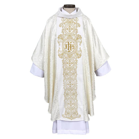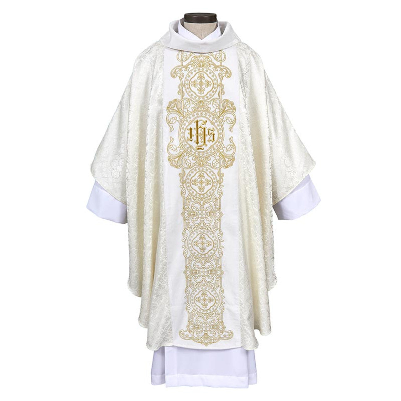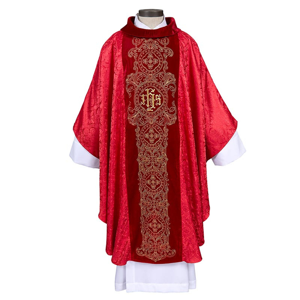 Saint Mark Chasuble is crafted with beautiful Avignon Jacquard fabric. The velveteen orphrey is fully embroidered with stunning gold design.