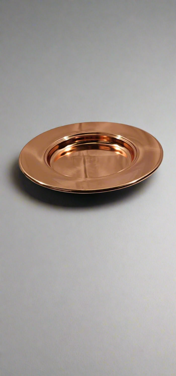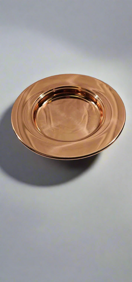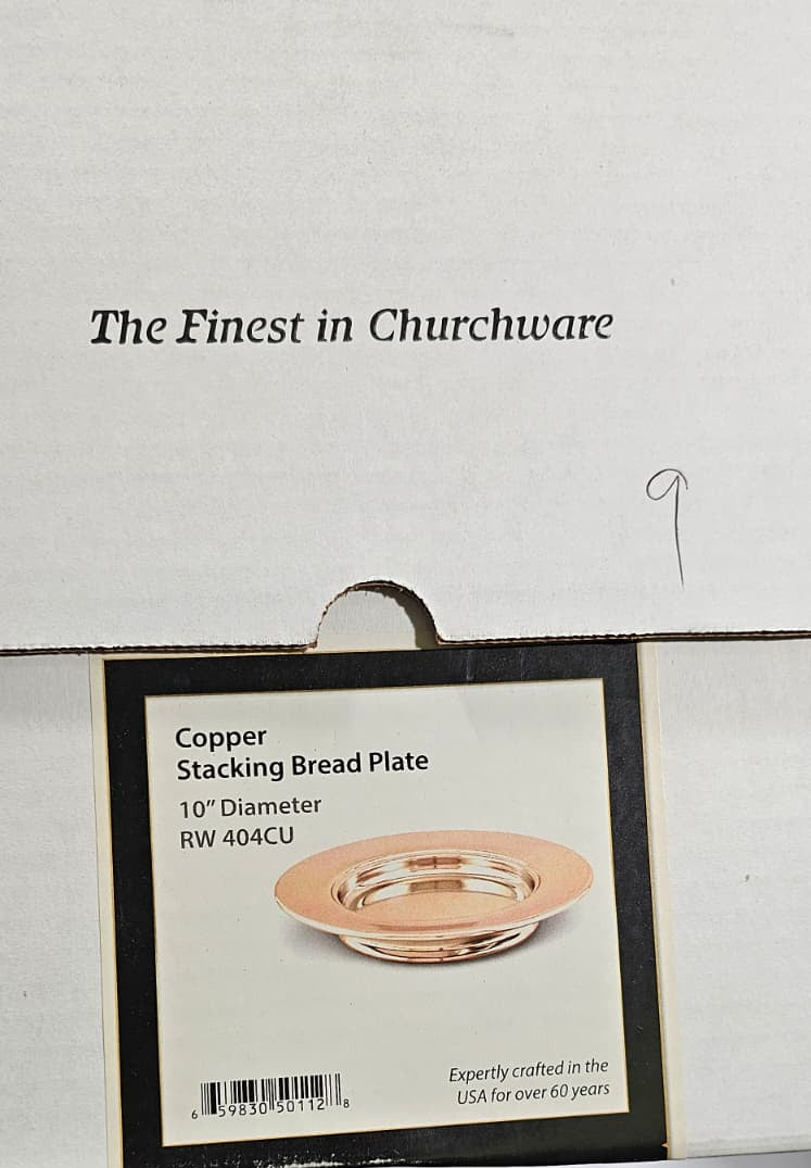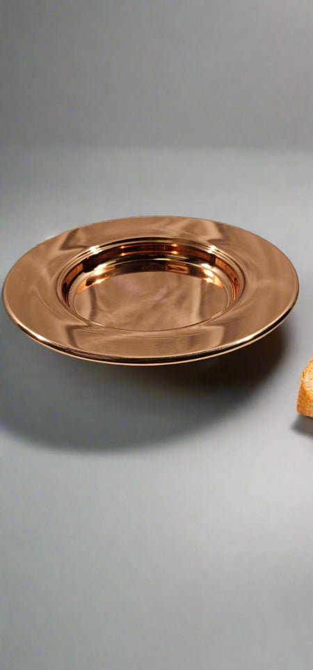 Each meticulously crafted piece of Artistic communion ware is designed to honor and glorify the solemn and sacred act of receiving holy communion. This solid copper bread plate gives a stunning and contempoary look. Its rich luster is protected by an exclusive urethane finish that will give many years of maintenance-free use.