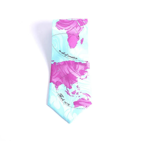 This design incorporates the inspiring words from Mark 16:15, “Go into all the World,” with a travel and earth-themed pattern in vibrant turquoise and pink. The design captures the spirit of adventure and the call to explore, making it perfect for anyone with a passion for travel or a love of bold, meaningful statements.