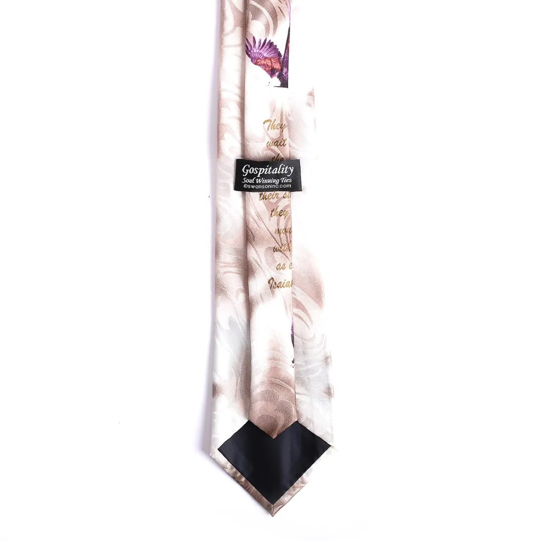 This design is inspired by the powerful verse from Isaiah 40:31, which speaks of “mounting up with wings as eagles.” The tie features beautiful imagery of eagles soaring through the sky, set against a striking turquoise background. It’s a perfect visual representation of strength, resilience, and hope, making this tie not just an accessory but a reminder of faith.