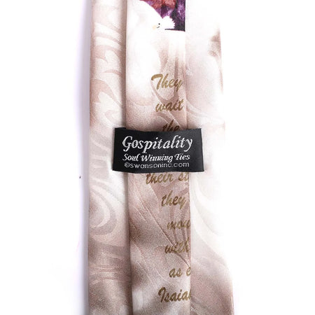 Individually packaged in a poly-sleeve with a plastic hanger, this tie is ready for gifting, display, or storage. It makes a thoughtful gift for someone who appreciates both style and faith, or as a personal accessory to inspire and uplift.