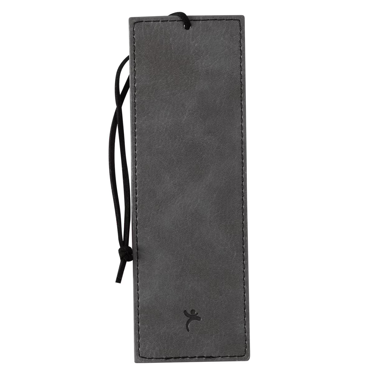 The Trust in the LORD Gray and Black Faux Leather Bookmark is part of the Gray and Black Trust in the LORD Collection that includes a stainless steel mug, faux leather journal, stainless steel water bottle, and faux leather Bible case.