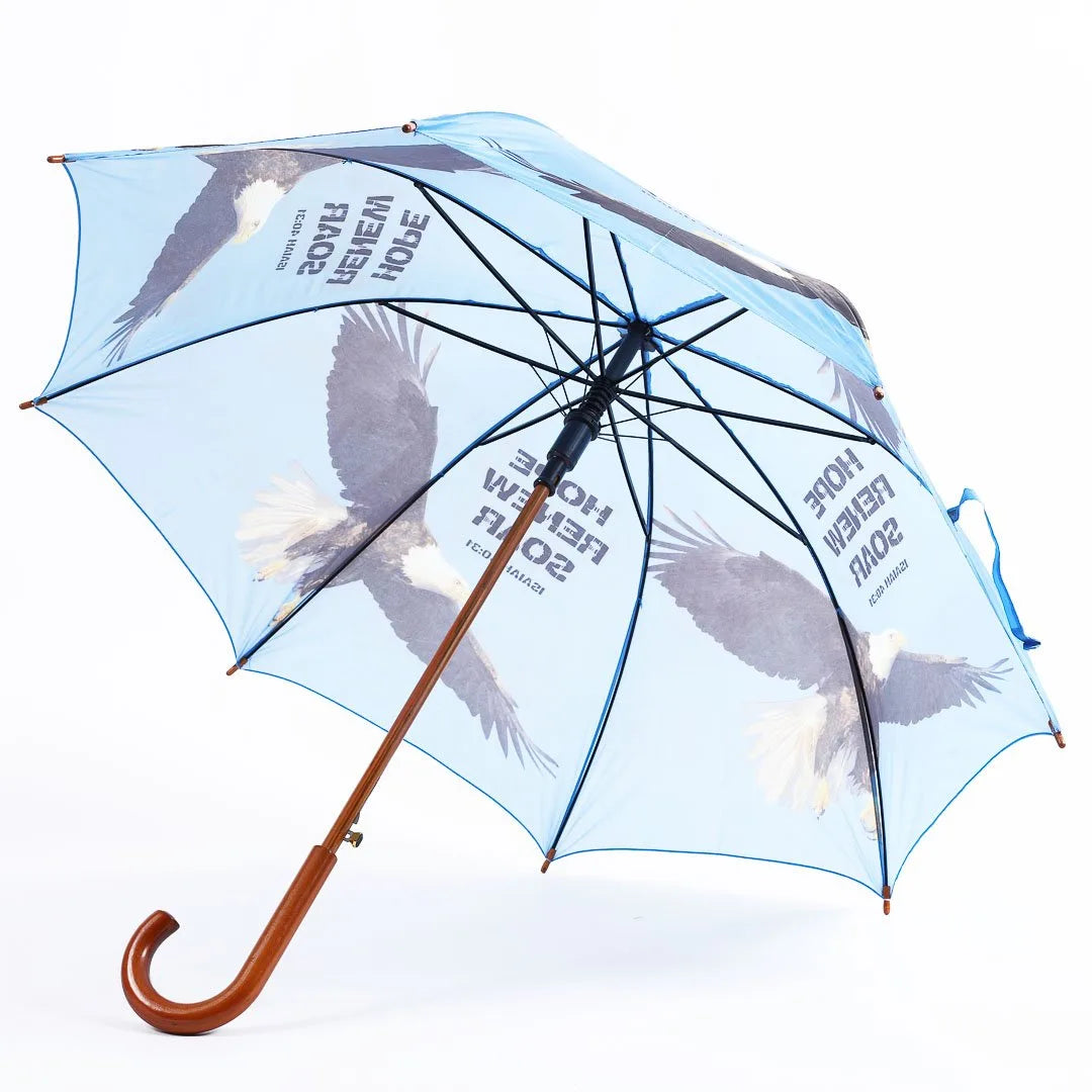 These wooden stick umbrellas combine classic full-length umbrella construction with faith-inspired artwork and uplifting messages. Designed for both durability and visual impact, each umbrella features a sturdy wooden handle and meaningful Christian themes that offer encouragement in any weather.