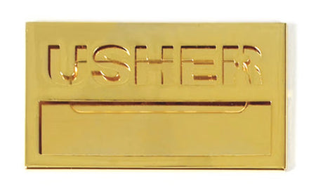 The Broadman Church Supplies Usher Name Badge - Brass is manufactured from a zinc alloy, which allows for a strong, yet very light-weight badge. Each badge is designed so that a blank name card can be inserted into the channel in the frame. These badges feature a magnetic attachment for easier placement on a variety of clothing. The header card Includes a warning for wearers of small electronic devices, such as pacemakers, as the magnets may negatively impact those devices. A free on-line template with instructions and suggestions is a