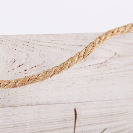 - Material: Solid wood wall décor with rope hanger