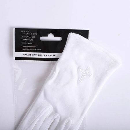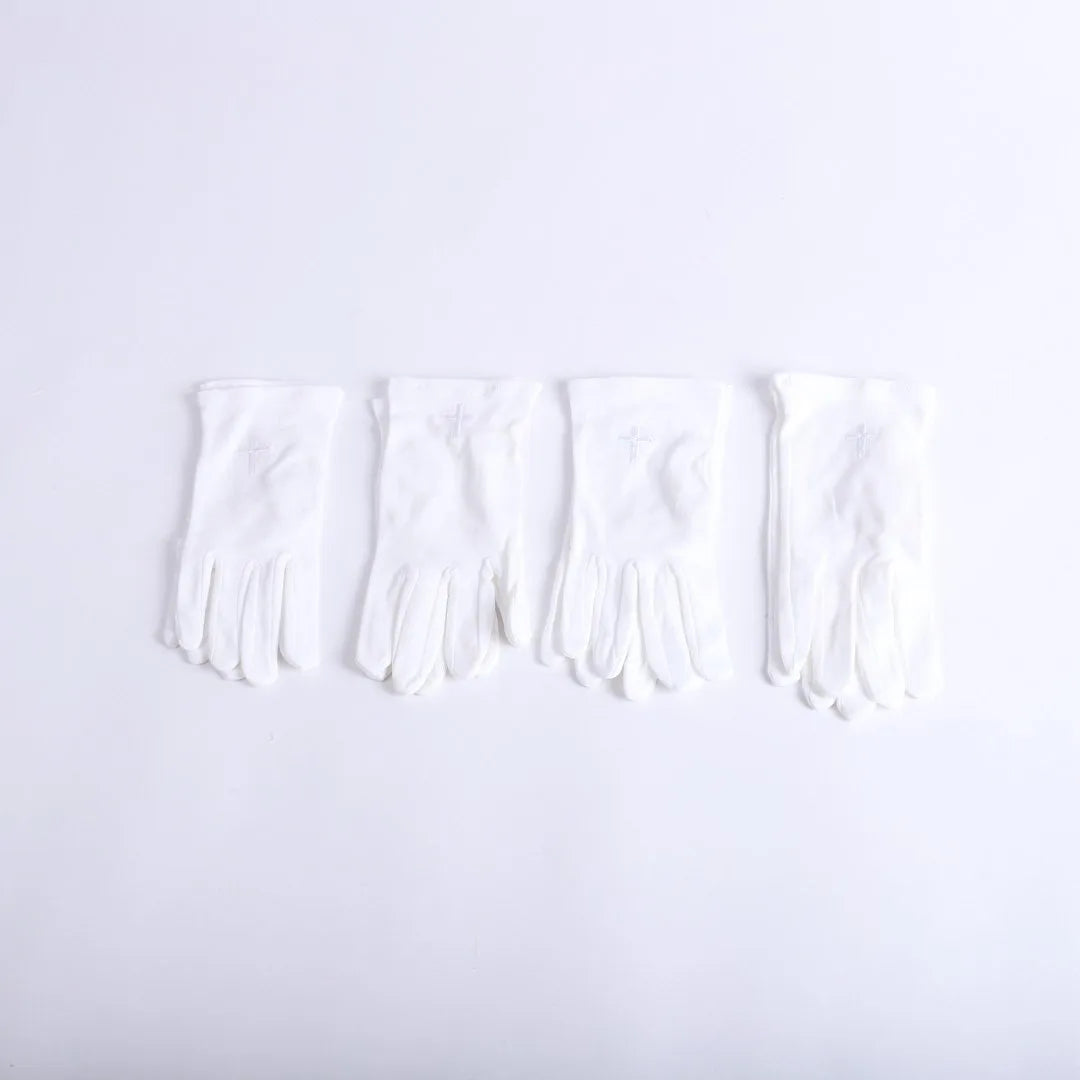 Made from 100% premium cotton, these gloves are lightweight, breathable, and incredibly comfortable to wear, even in warm weather. The soft fabric ensures a snug yet flexible fit, allowing for natural hand movements while maintaining a refined and professional appearance. The embroidered cross adds a meaningful and understated touch, making these gloves particularly suitable for religious occasions and other dignified settings.