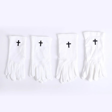 These premium white cotton gloves with a small black embroidered cross are an excellent choice for formal events, performances, and seasonal occasions. Perfect for ushers, greeters, deacons, pallbearers, and other roles, these gloves are designed to project professionalism, cleanliness, and elegance. Whether you’re greeting guests, assisting at a religious service, or performing ceremonial duties, these gloves add a polished and sophisticated touch to any outfit.