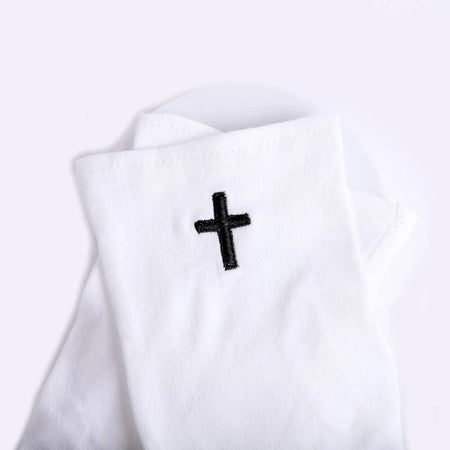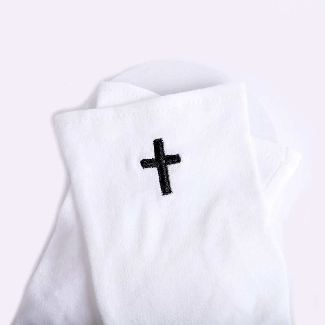 Made from 100% cotton, these gloves are lightweight and breathable, ensuring comfort even in warmer weather or during extended wear. The soft cotton fabric provides a comfortable, snug fit that allows for easy movement while maintaining a refined, clean look. The small black embroidered cross adds a meaningful and stylish detail, making these gloves especially suitable for religious or ceremonial occasions.