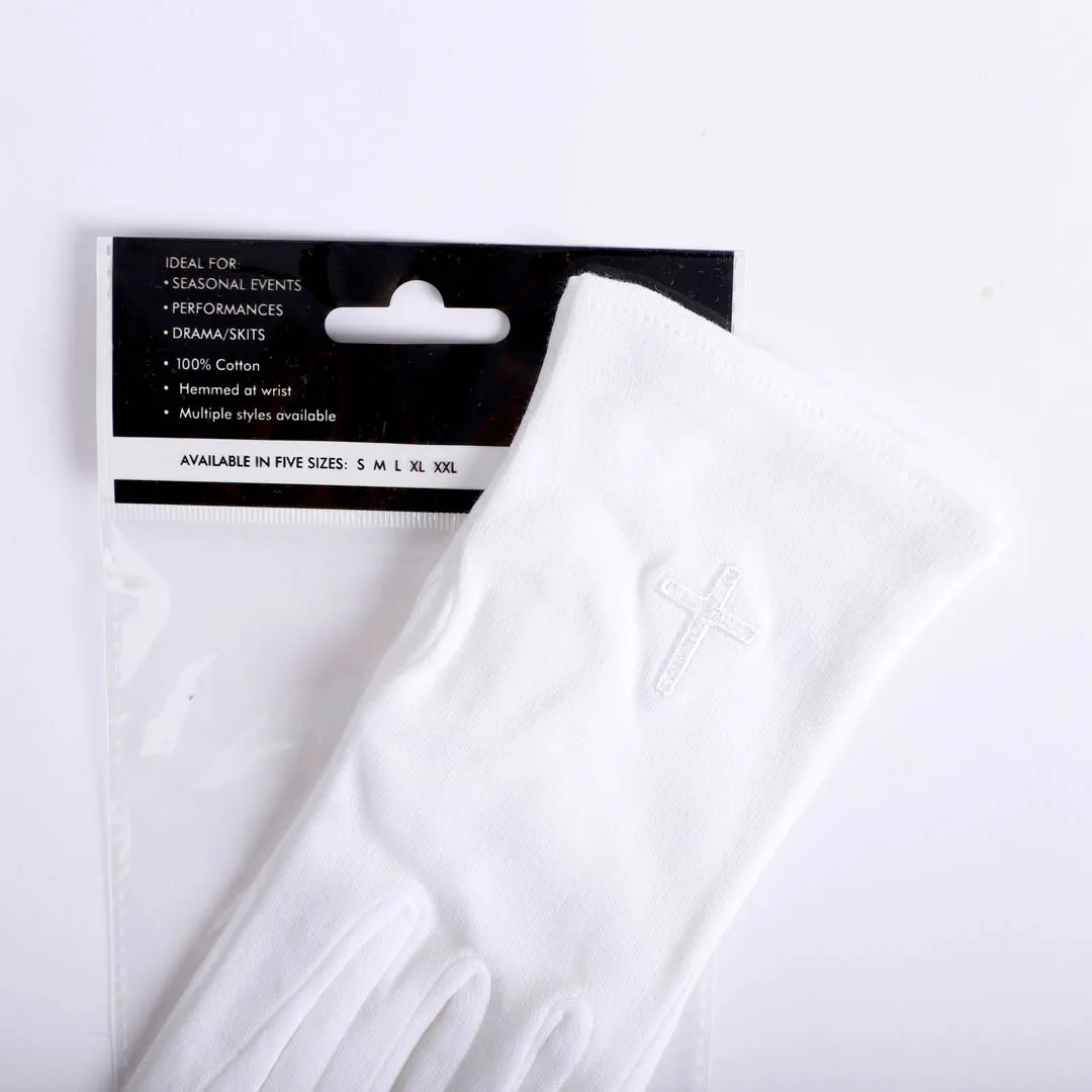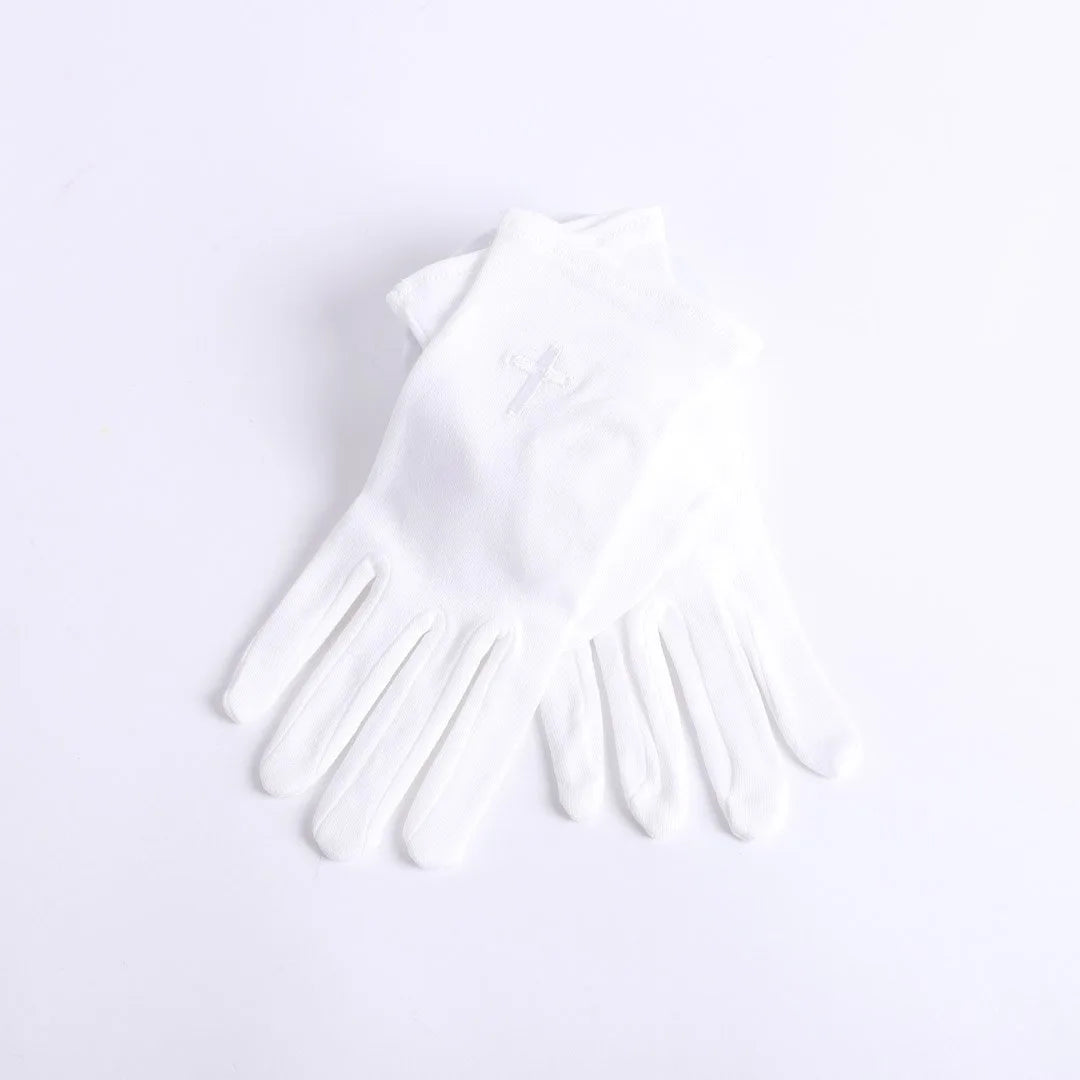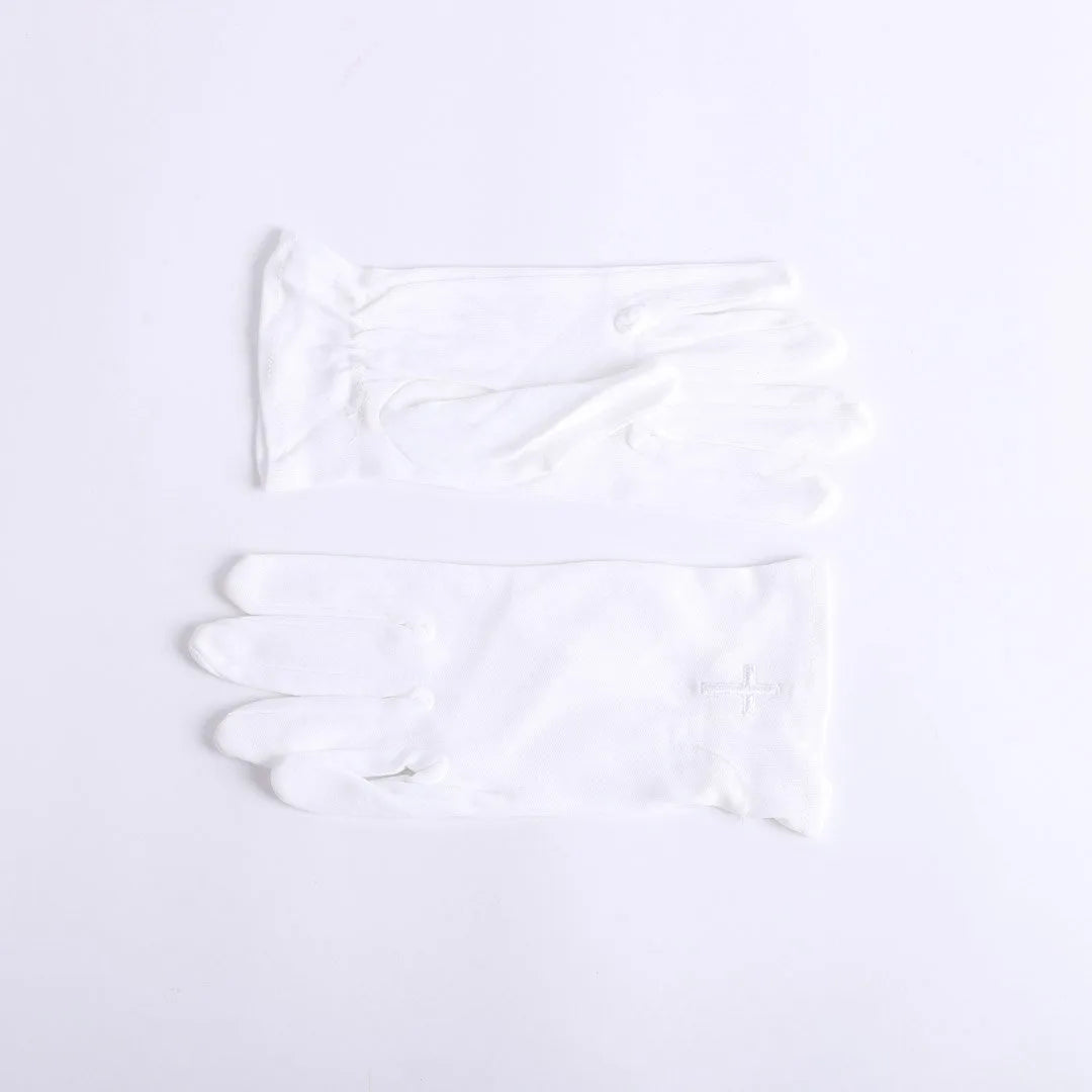 Crafted from 100% high-quality cotton, these gloves are lightweight, breathable, and designed for comfort even during extended wear or warm weather. The soft, flexible fabric ensures a snug fit, allowing for natural hand movements without sacrificing style. The subtle embroidered cross adds a meaningful and elegant detail, making these gloves particularly suitable for religious services and other formal settings.