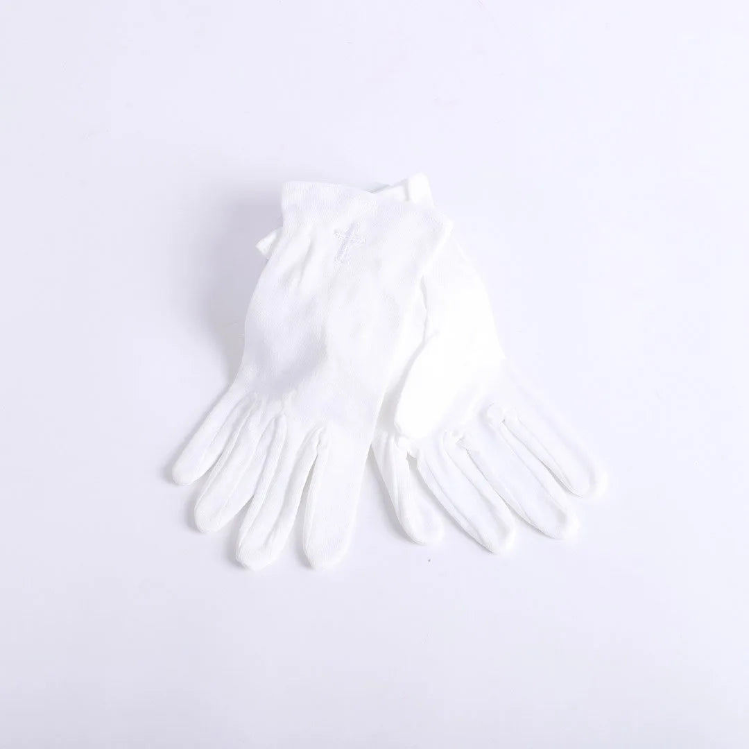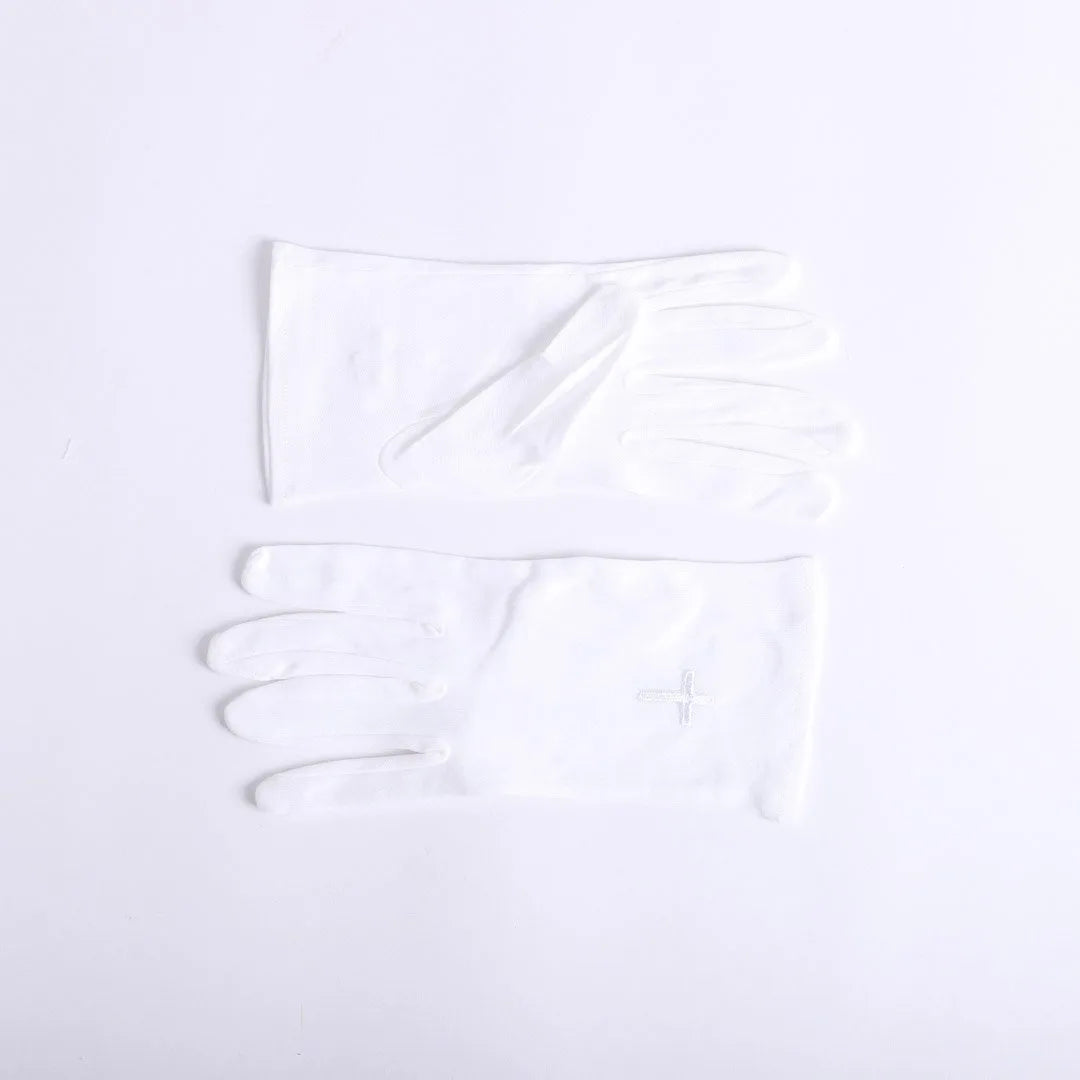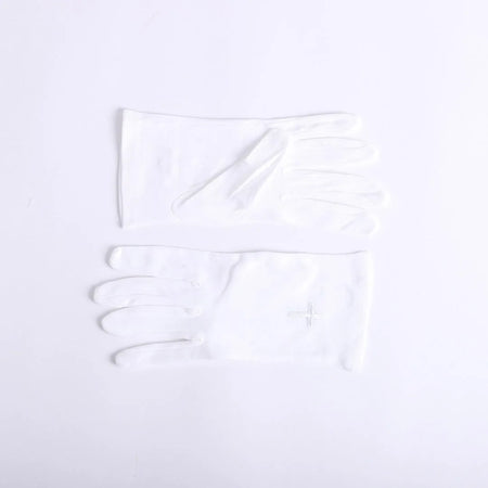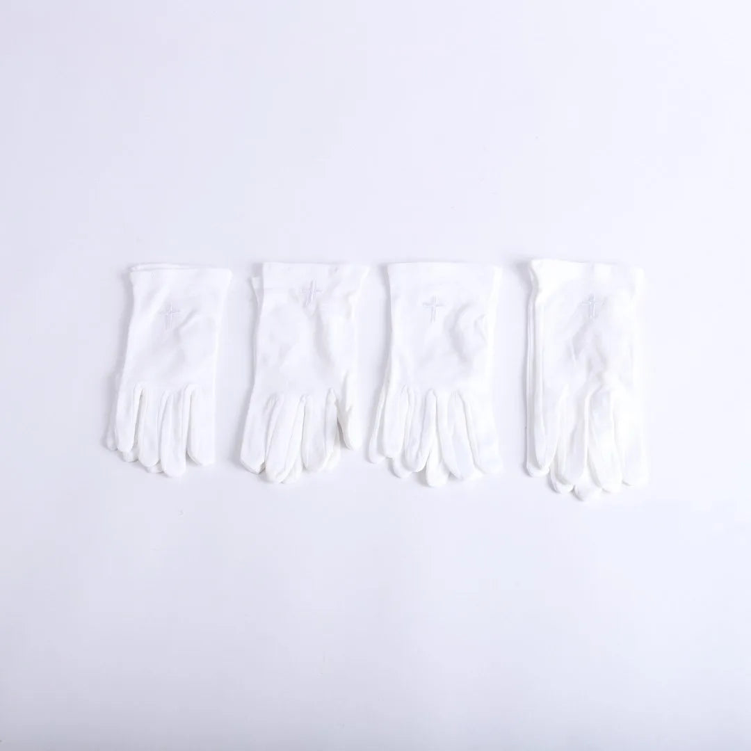 Made from 100% high-quality cotton, these gloves are lightweight and breathable, making them exceptionally comfortable to wear even during warm weather or extended periods. The soft fabric ensures a snug yet flexible fit, allowing for natural hand movements while maintaining a neat and sophisticated appearance. The small white embroidered cross adds a meaningful and subtle detail, making these gloves particularly well-suited for religious or formal settings.