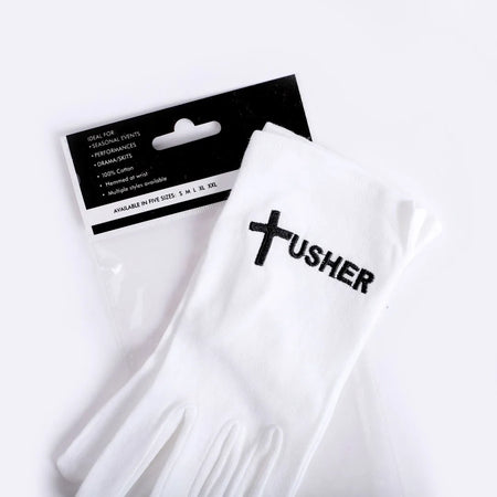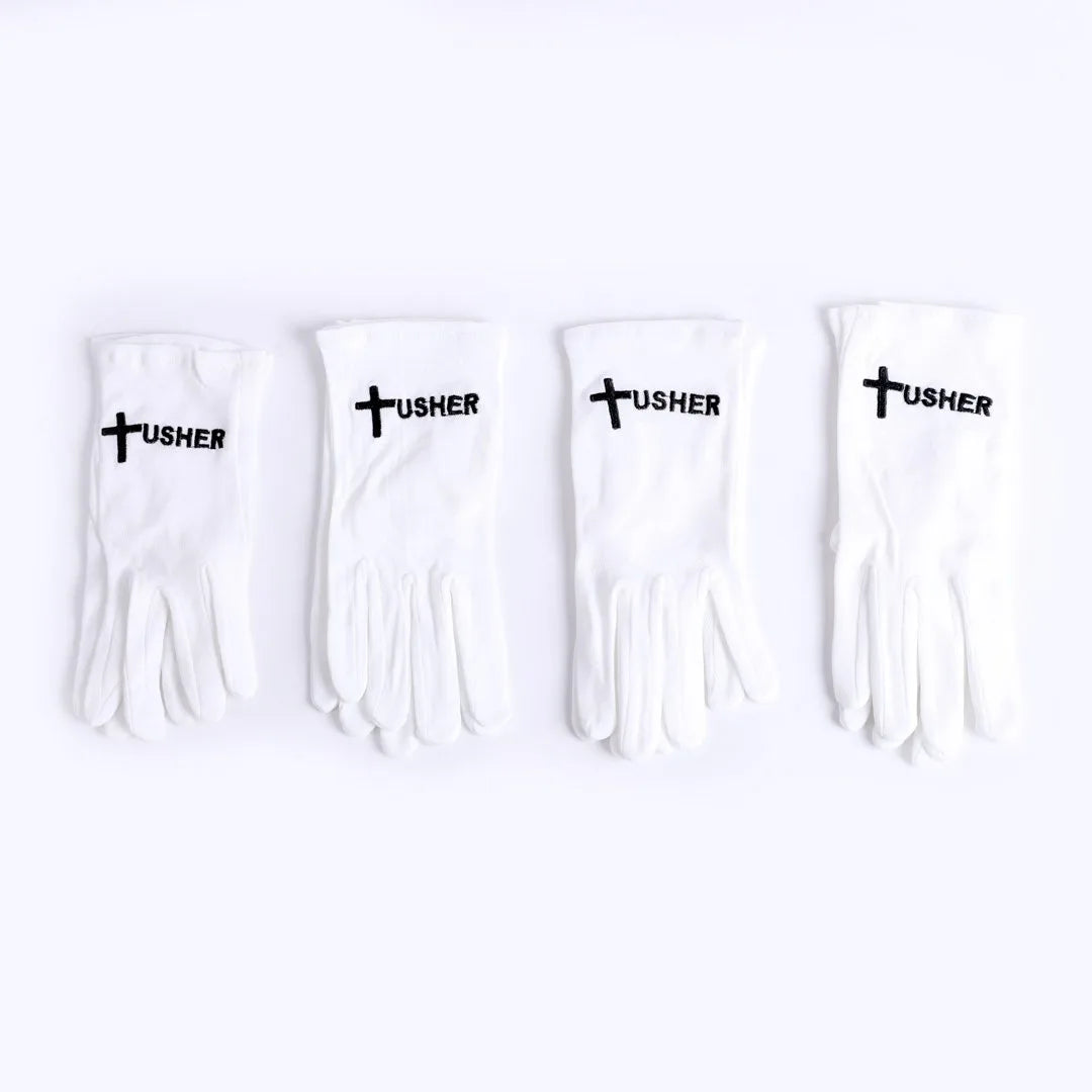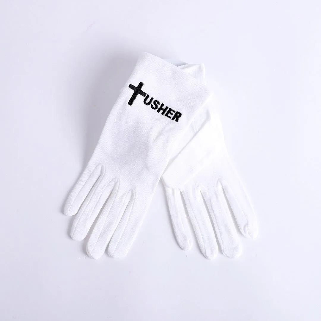These premium white gloves with a small black embroidered “Usher” design are the perfect accessory for formal events, seasonal performances, and ceremonial occasions. Tailored for ushers, greeters, deacons, pallbearers, and similar roles, these gloves are an essential addition to any professional wardrobe. Whether shaking hands, assisting during services, or participating in a performance, these gloves project professionalism, cleanliness, and elegance.