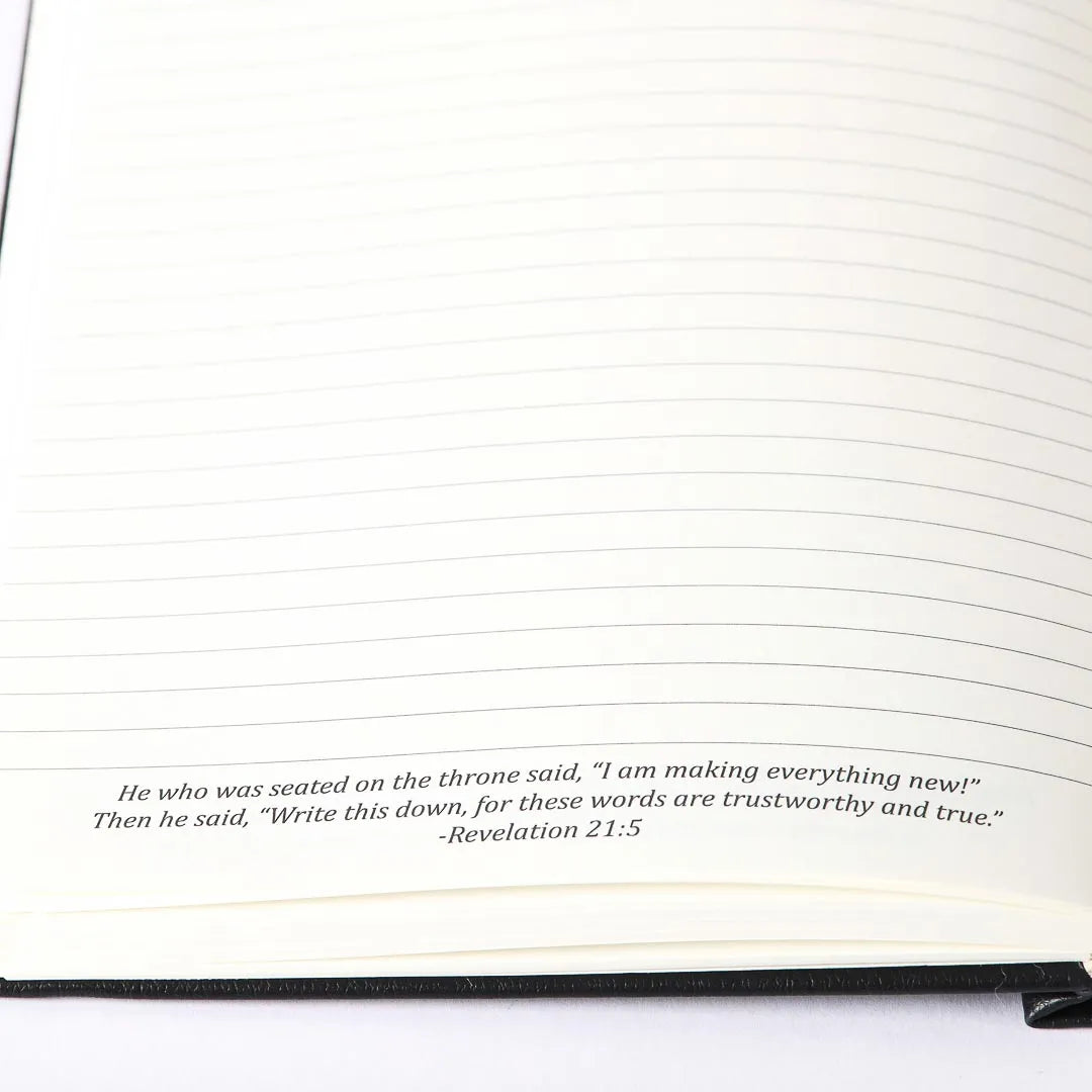 This Wineskin features 420 college-ruled pages on the inside, and each has one of 8 select inspiring verses placed at the bottom of the page. Inside the front cover, you will find a printed verse from the book of Isaiah and a section for your name. The verse is Isaiah 43:19, which says “Behold, I will do a New Thing.” This is a message from The Lord that speaks of the plan and calling on our lives, and how He offers us comfort and reassurance, knowing that we can trust Him and He will sustain us.