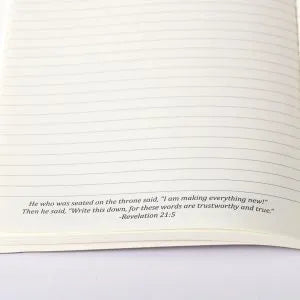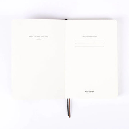 This Wineskin features 196 college-ruled pages on the inside, and each has one of 8 select inspiring verses placed at the bottom of the page. Inside the front cover, you will find a printed verse from the book of Isaiah and a section for your name. The verse is Isaiah 43:19, which says “Behold, I will do a New Thing.” This is a message from The Lord that speaks of the plan and calling on our lives, and how He offers us comfort and reassurance, knowing that we can trust Him and He will sustain us.