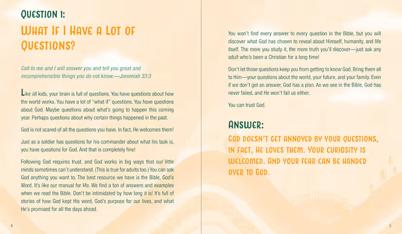 This easy-to-read devotional offers daily encouragement and truth to combat that worry. Each of the one hundred devotions, plus interactive Activity Days, rallies boys to trust the God who has all the answers. They’ll explore questions such as: